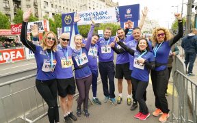 Beograd, 20. april 2017.- Petu godinu za redom, na Beogradskom maratonu, zaposleni Delta Holdinga trče za “decu leptire” iz Udruženja “Debra”.